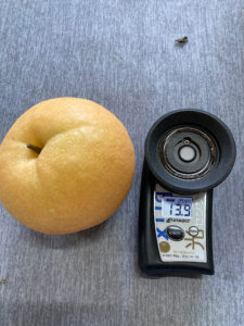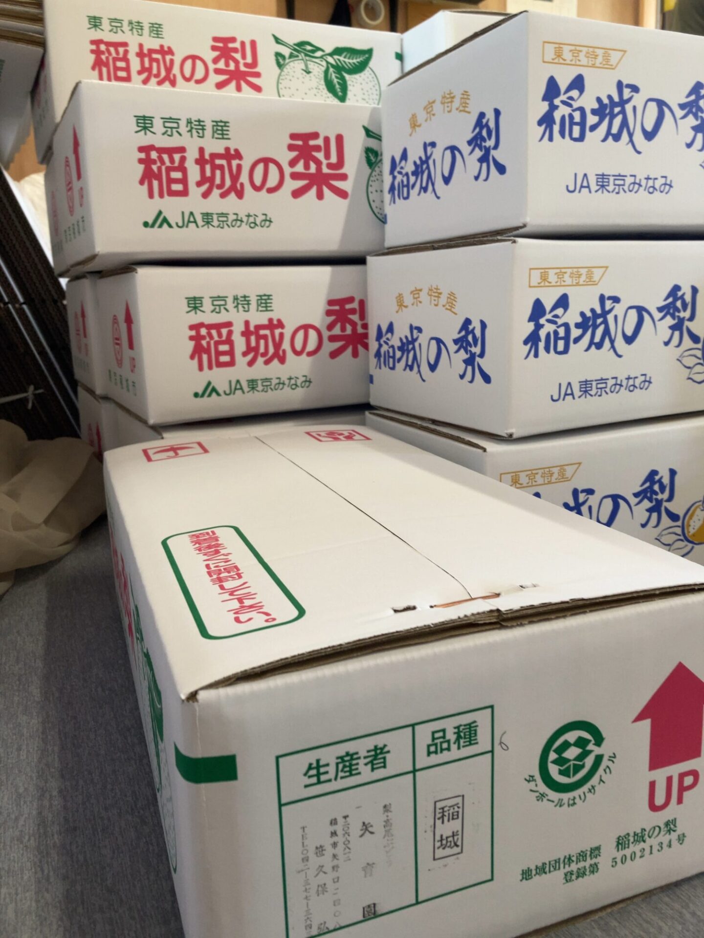朝に収穫した梨はお店で傷や形をチェックし仕分けを行います。